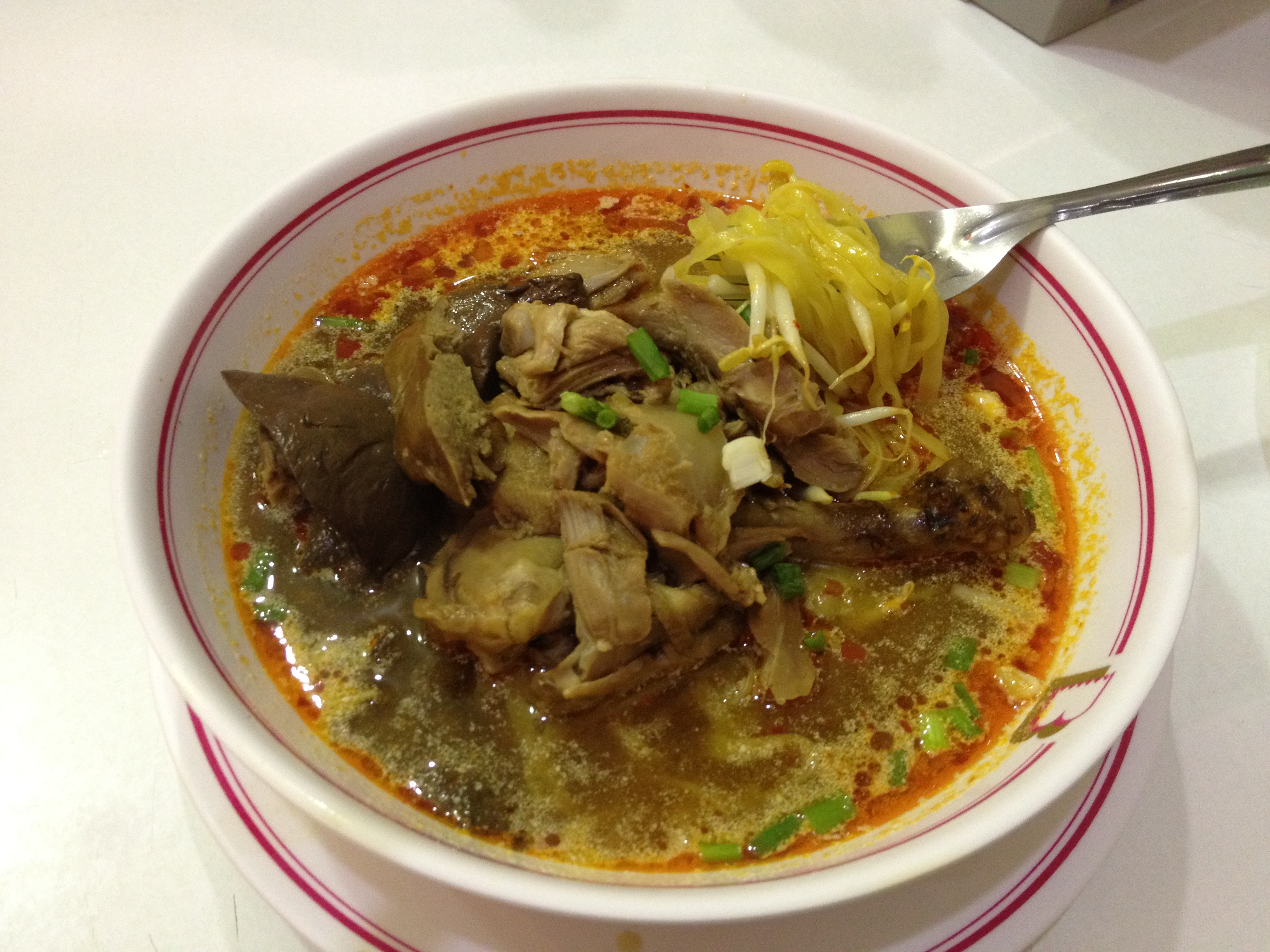 Duck and egg noodles in Tom Yum soup
