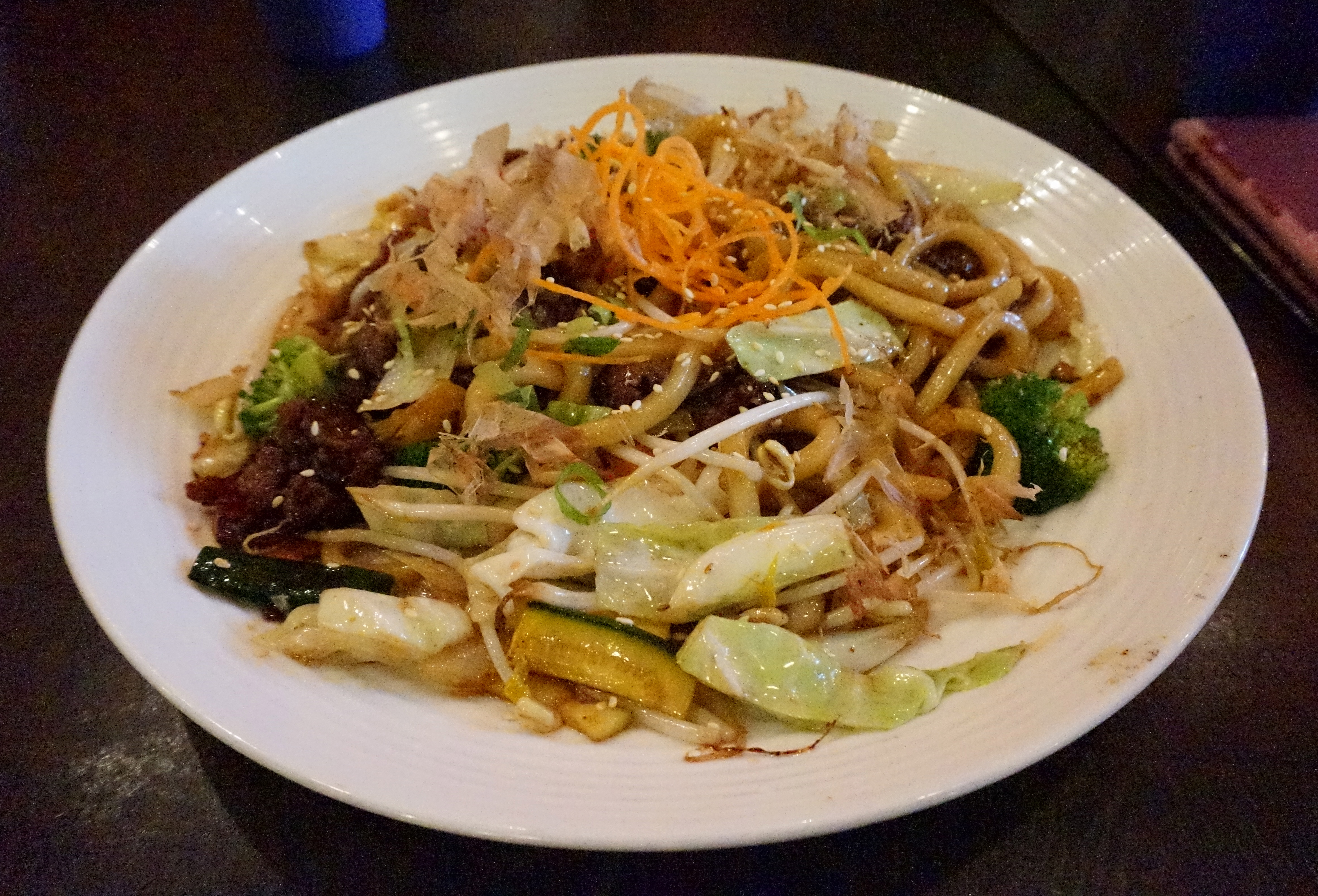 Wok tossed Japanese udon noodles with beef and vegetables