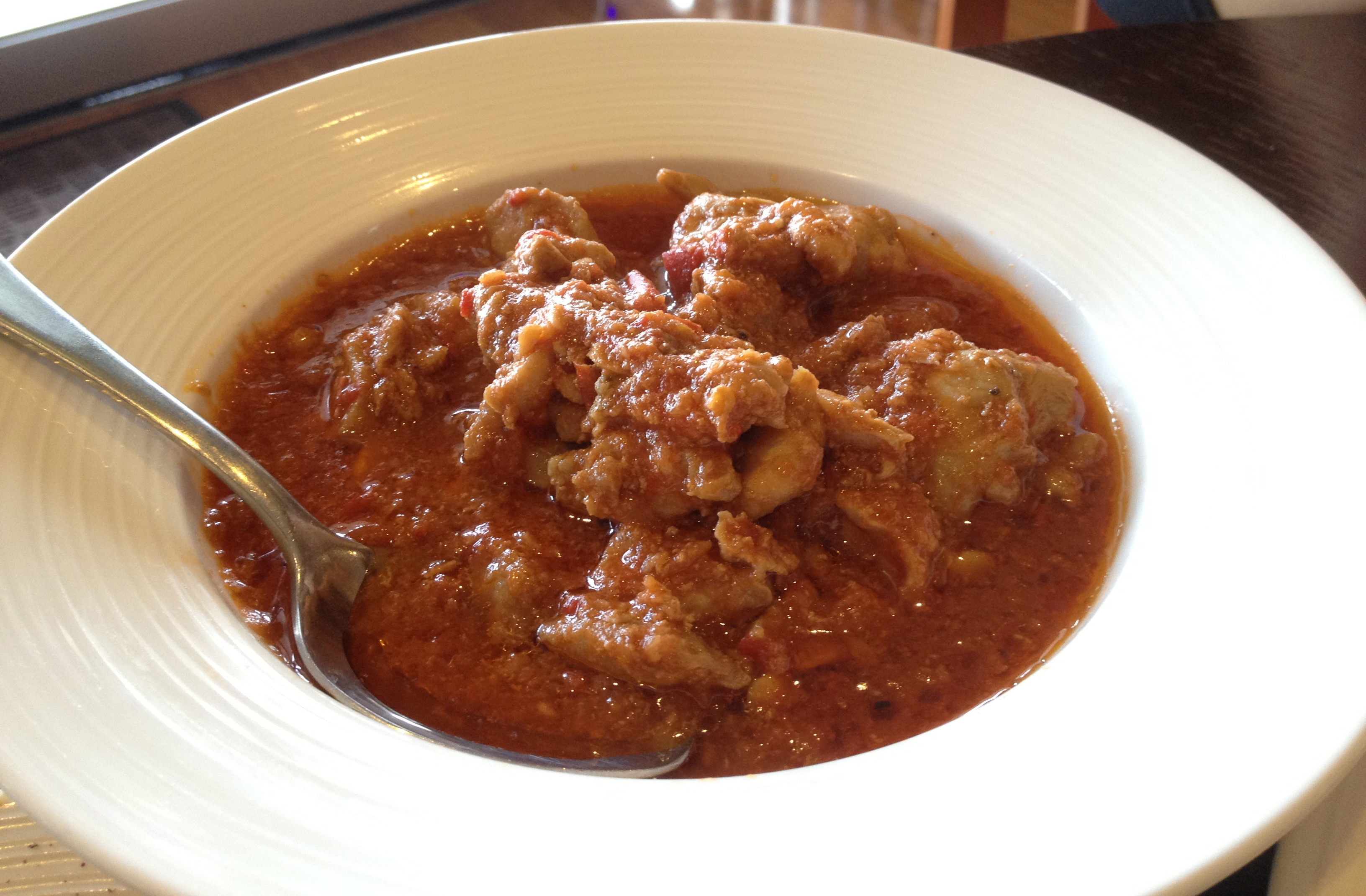 Chicken thigh fillet cooked in a mild tomato curry.