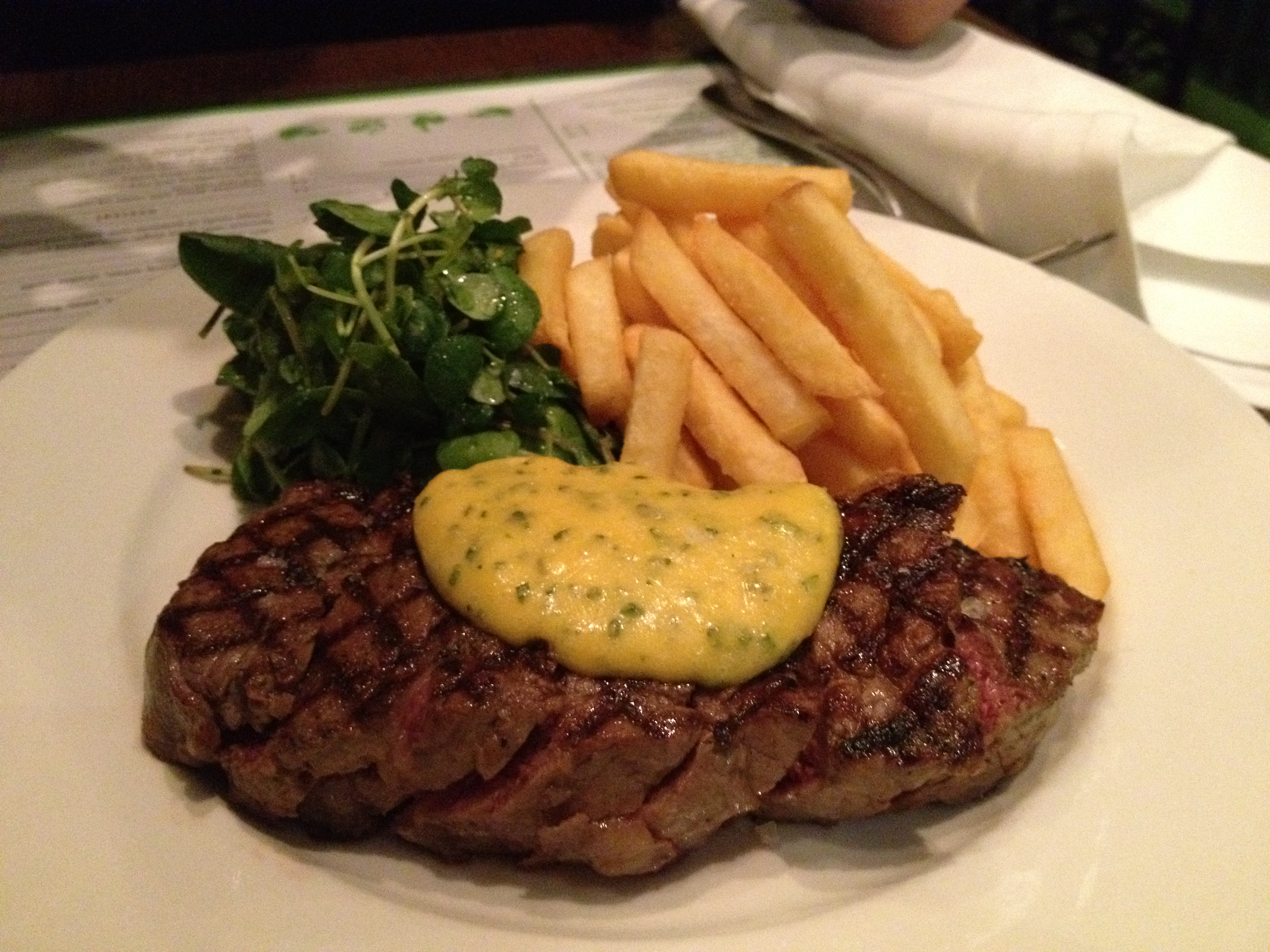 Steak frites – 200g of grain fed aged scotch fillet that came with fries and mustard butter = Good