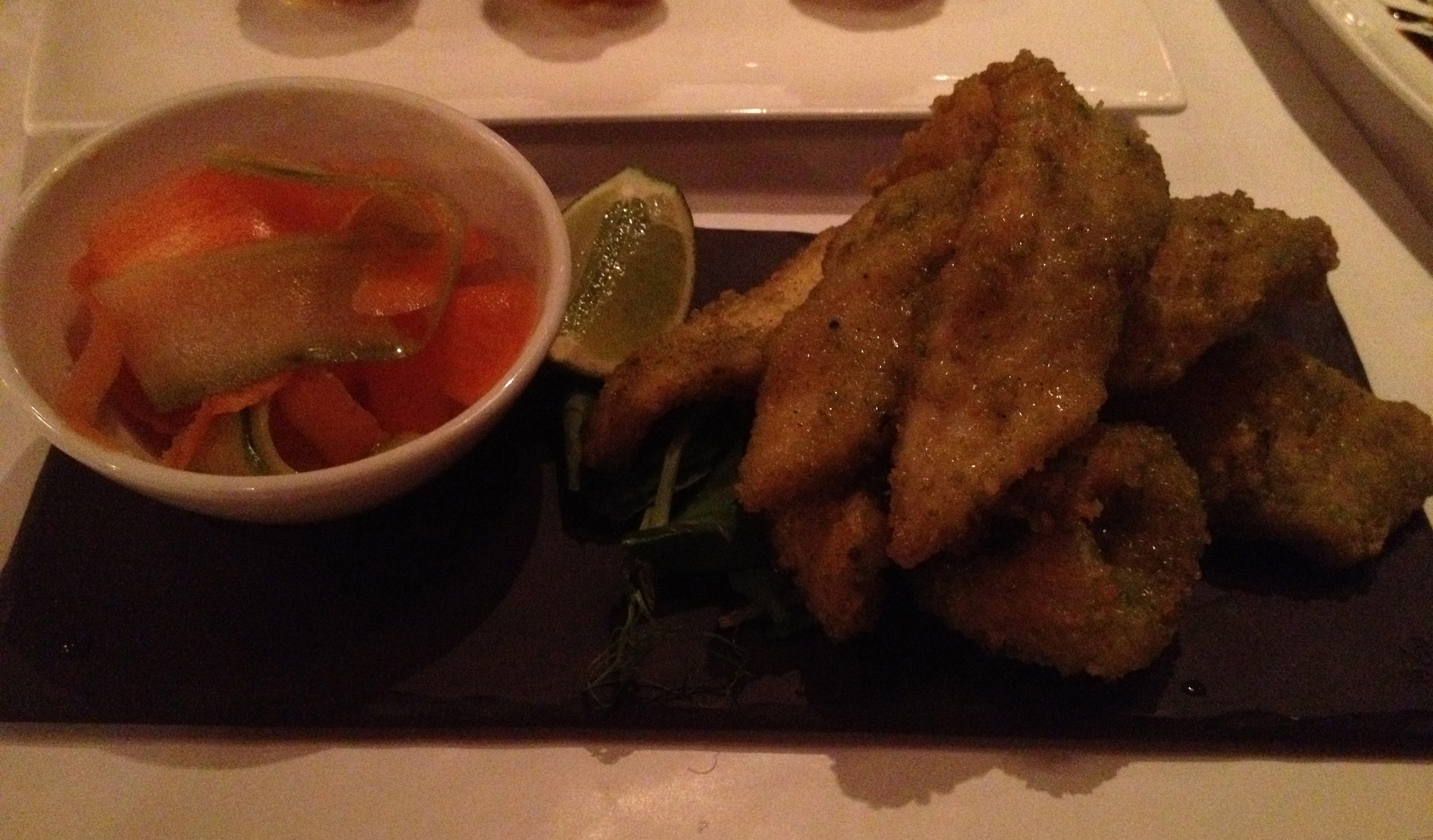 Crunchy saffron arancini – rather than being crunchy, these were stuck in your teeth chewy. I’m not sure how much (or if any) saffron went into these arancini balls but the only thing that I could taste was cheese = Bad