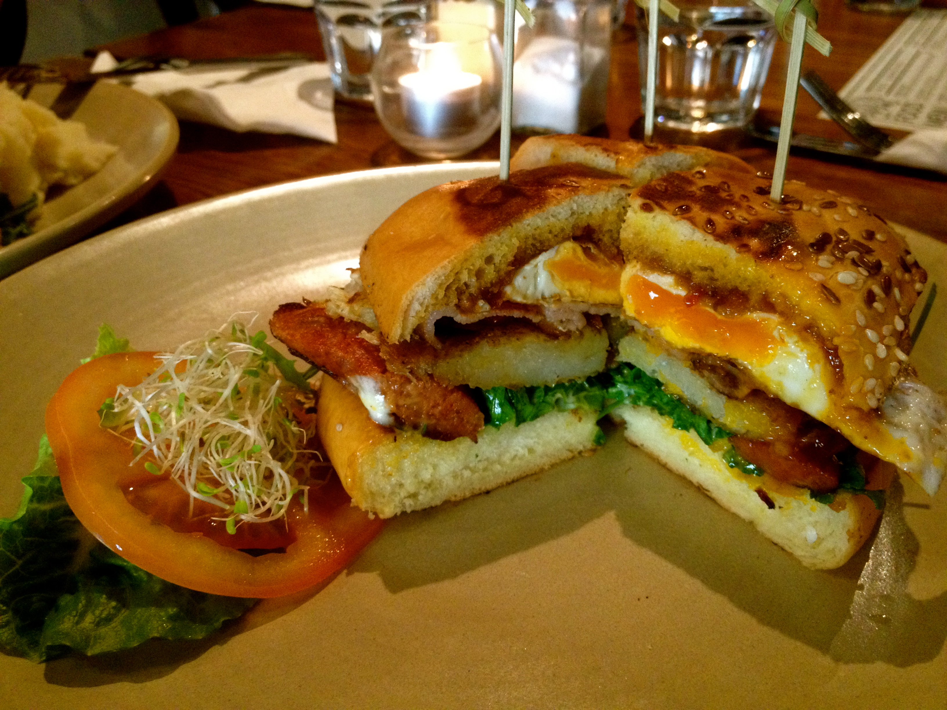 Soft Shell Crab Burger (brioche bun, sriracha mayo, sesame seed slaw, soft shell crab, spring onion and coriander)