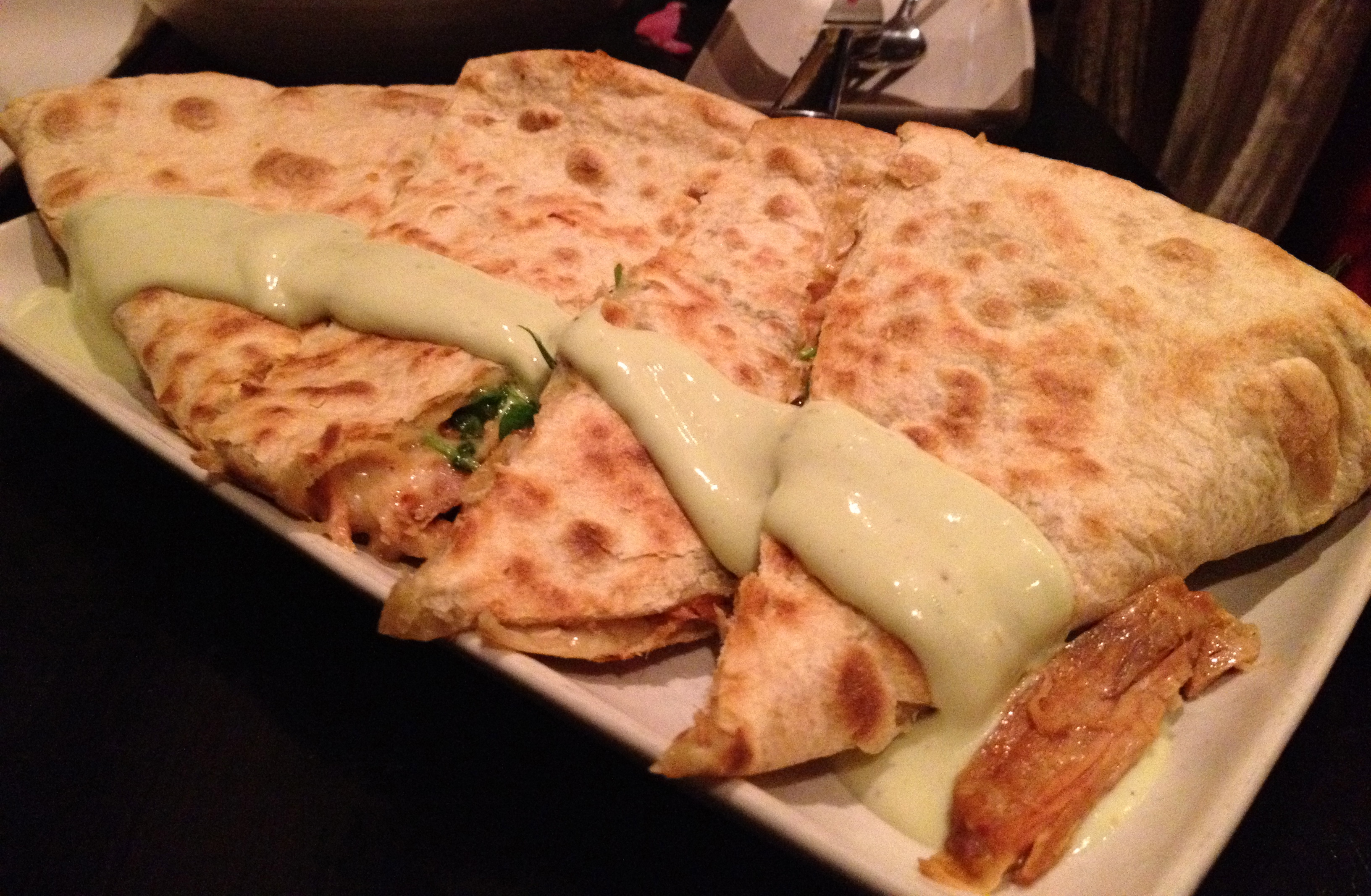 Quesadillas – corn tortillas with a cheese filling that gets toasted on the barbeque. There are two filling options available: the first being potato and chorizo, the second being bean, corn and roasted capsicum. Both were tasty but I probably enjoyed the vegetarian one more = Good