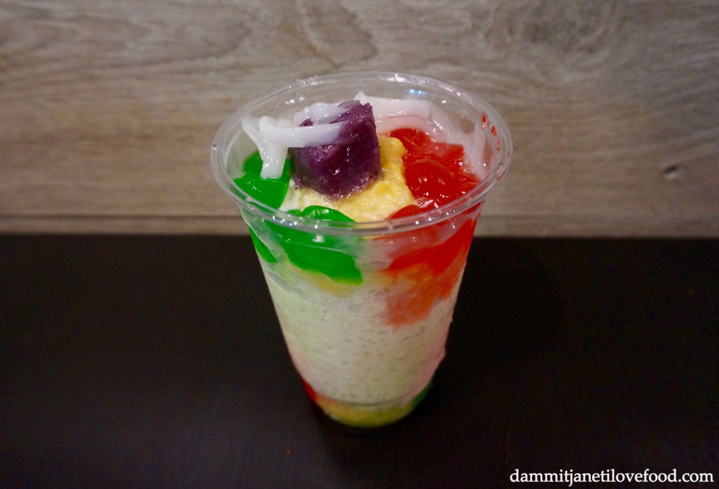 (honeycomb, violet ice cream, popping candy, chocolate)