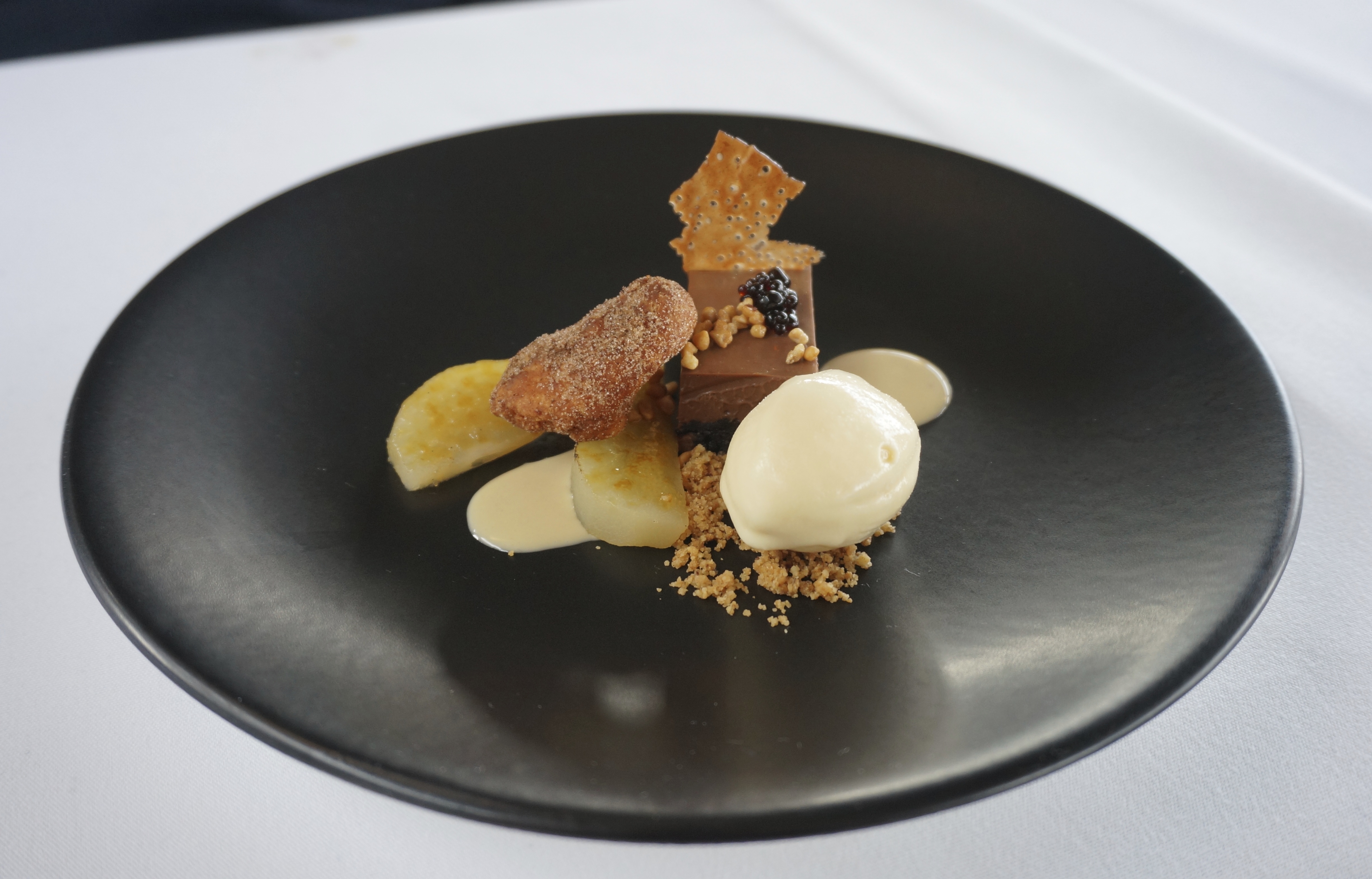 Vanilla rice pudding, toasted marshmallow ice cream, pekmez ganache and almond biscuit