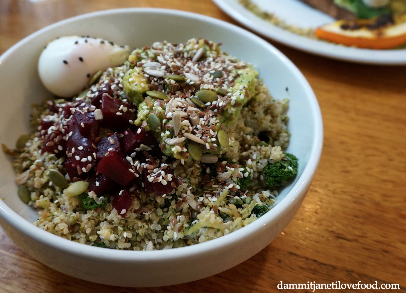 Good service, nicely presented food, normal looking cafe in the front area, odd army-like decor and graffitied walls in the back area.