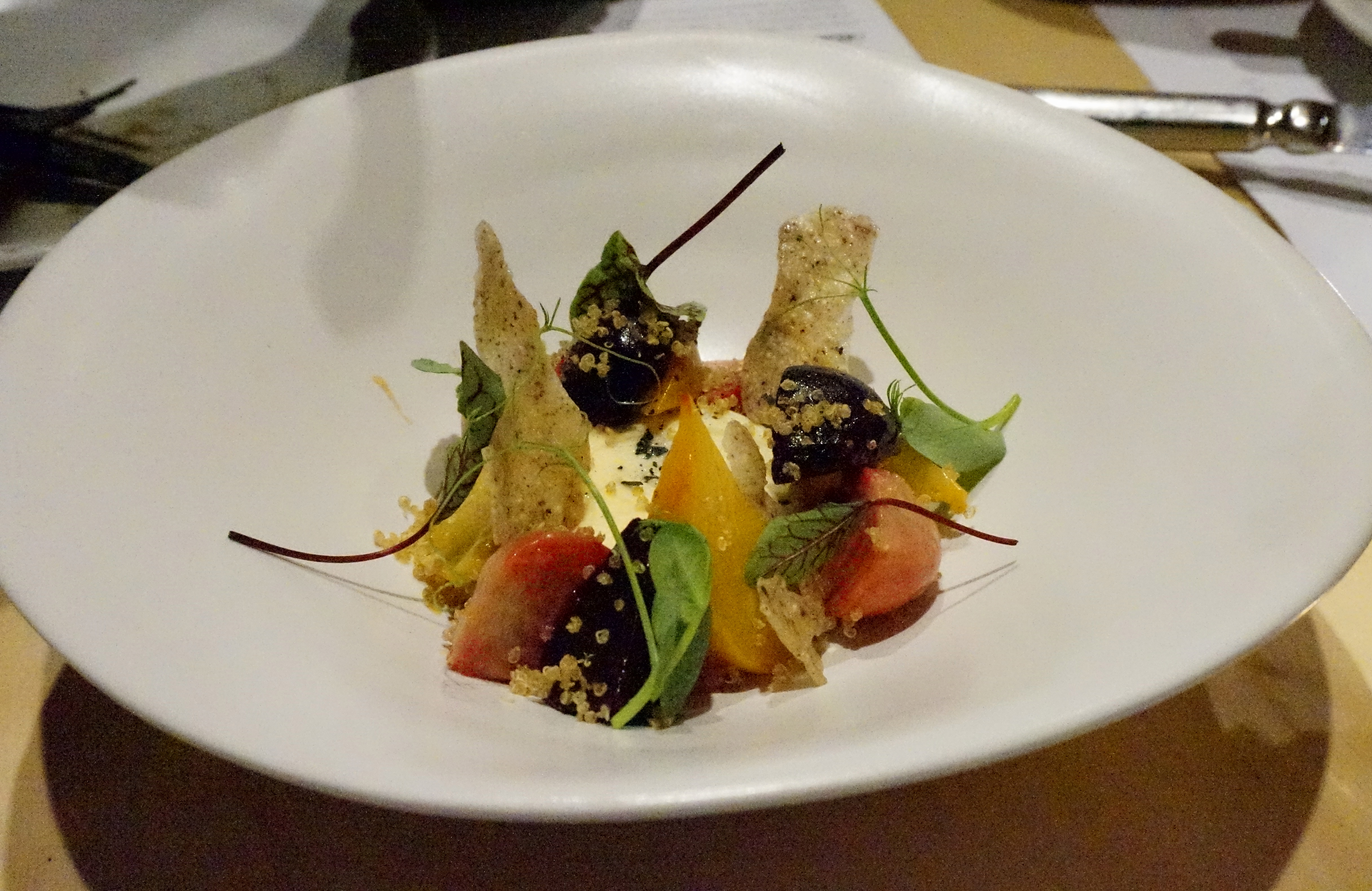 Grilled goats’ cheese, beetroot, quinoa, hazelnut