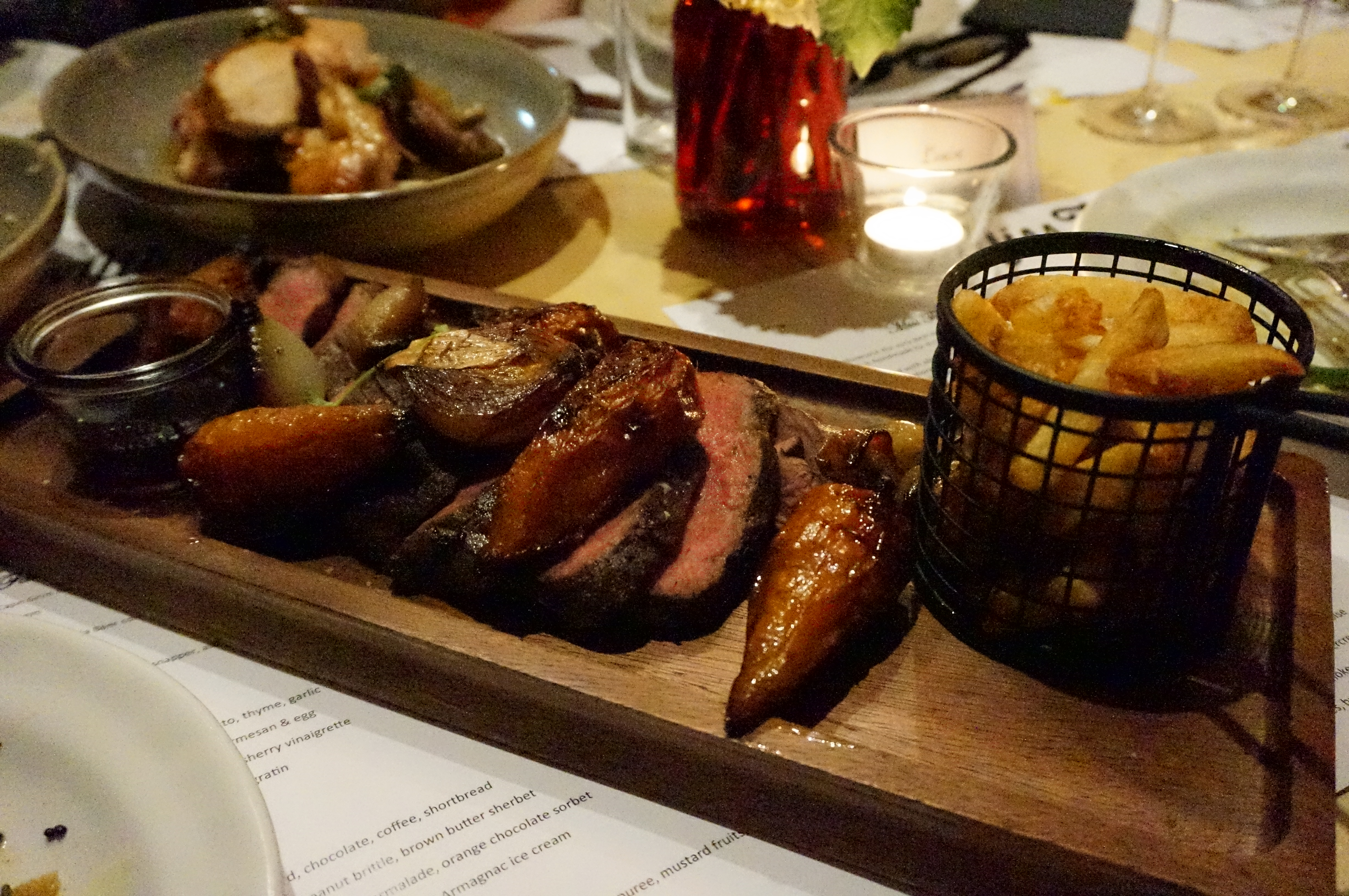 Cape Grim black Angus 2+ Tri Tip, charred onions, roasted carrots, duck fat potato