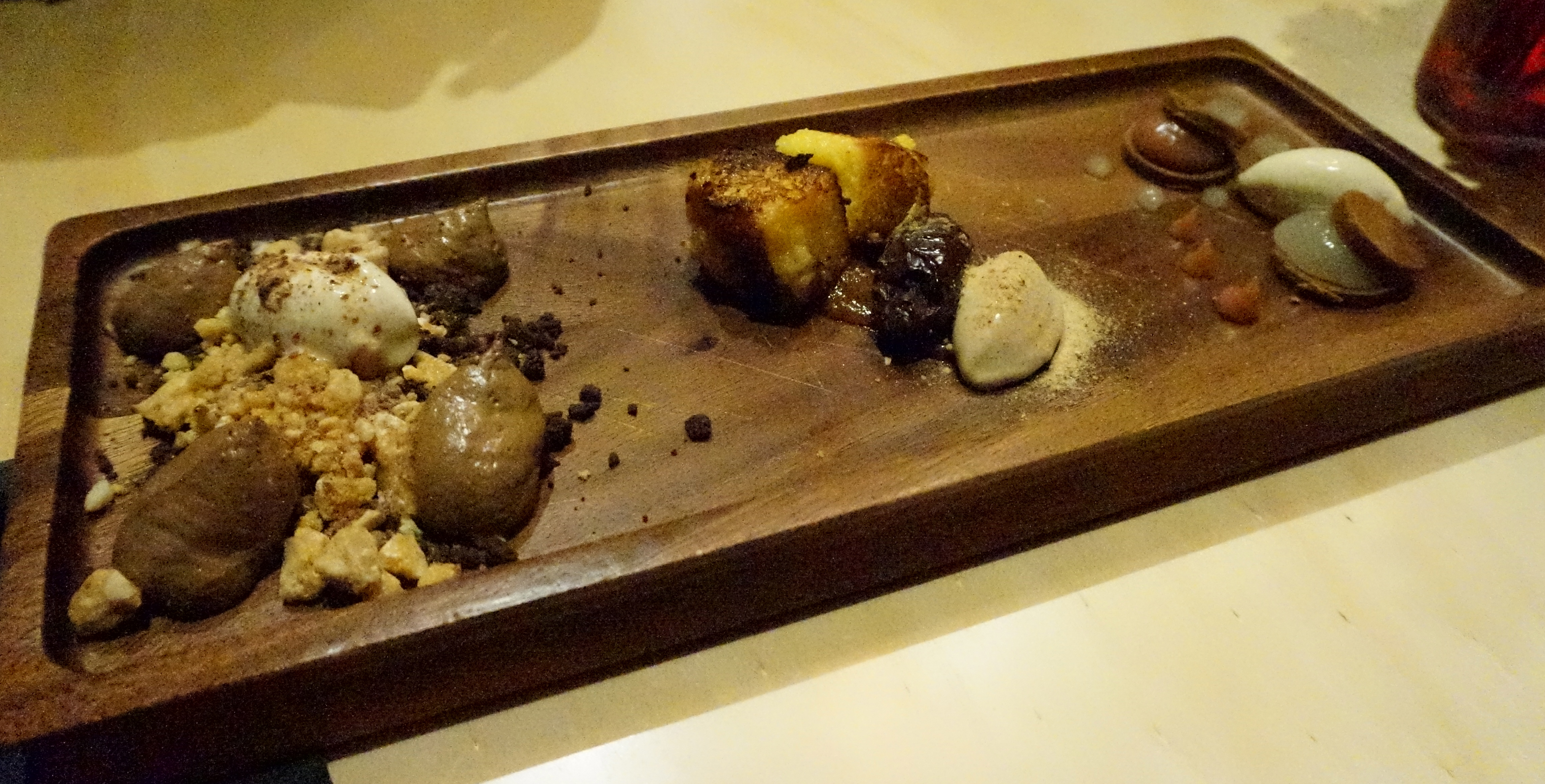 Bitter chocolate, olive oil & peanut brittle, brown butter sherbet