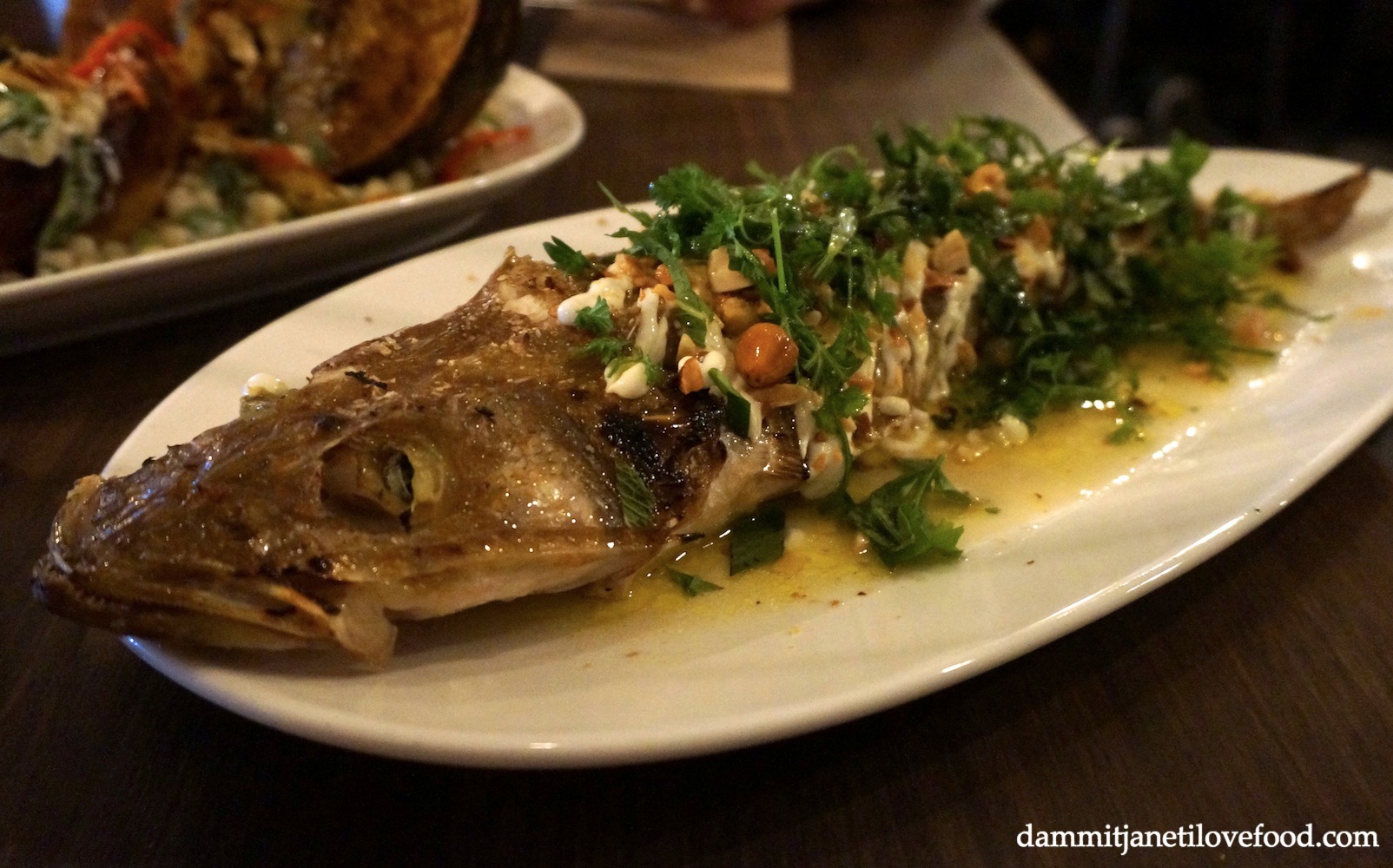 White BBQ fish, yogurt, sesame, lemon, herbs