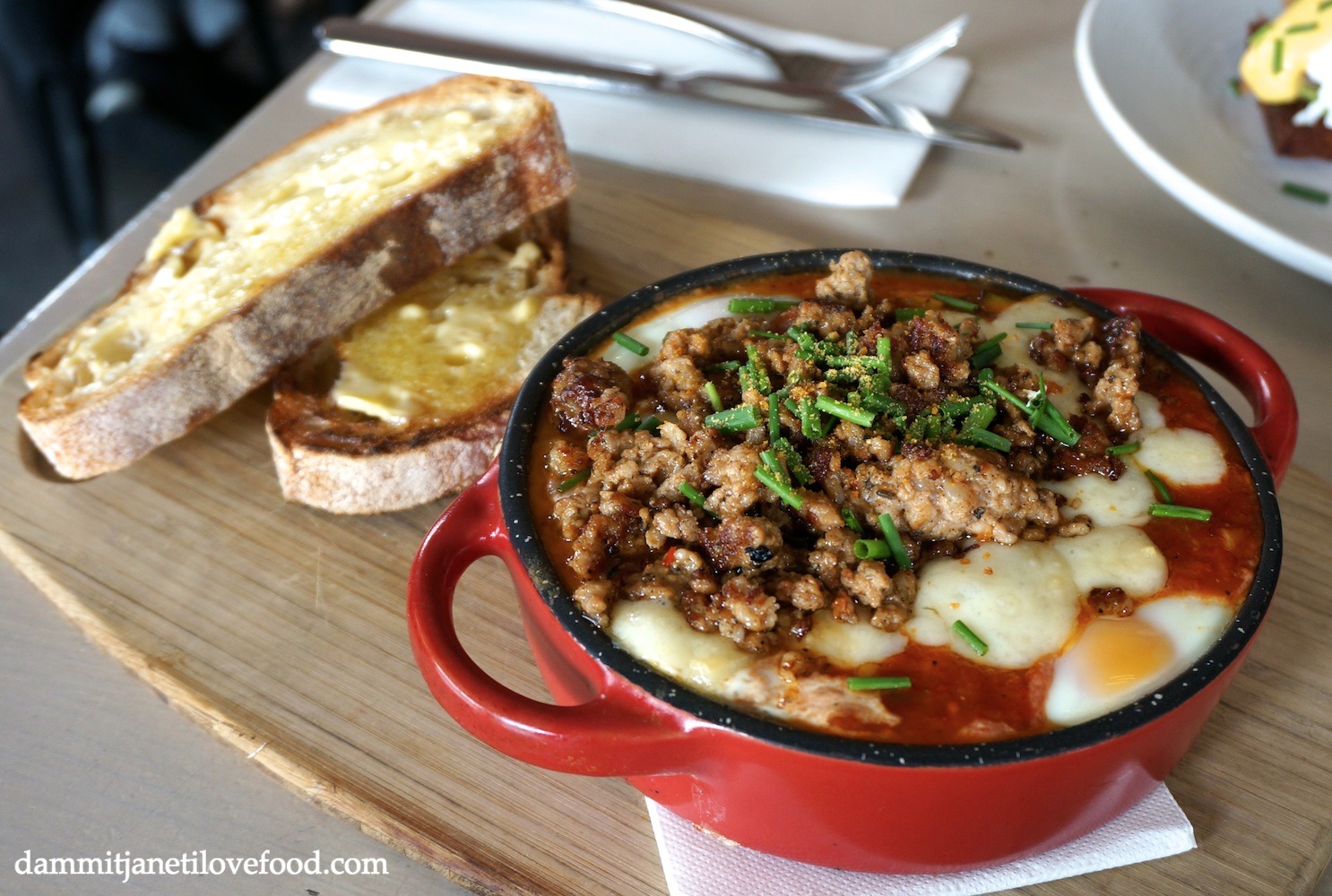 Spiced napoli baked eggs, grilled zucchini, spanish onion, corn, chorizo and manchego cheese served with ciabatta