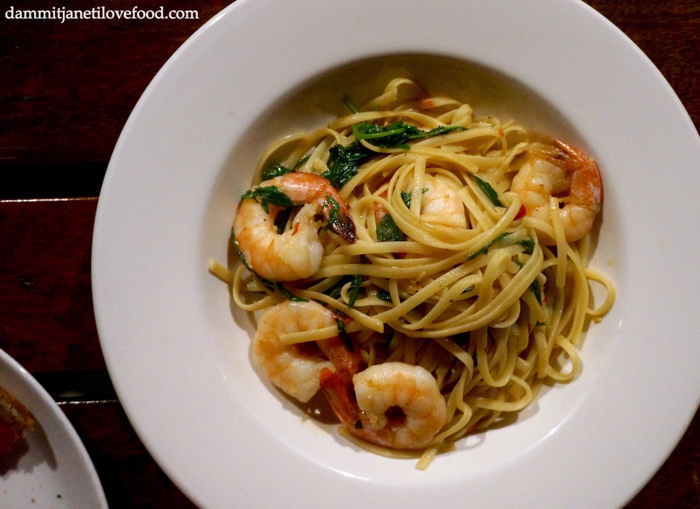 (baby spinach, tomatoes, garlic sauce, prawns, mozzarella cheese with creme fraiche base)