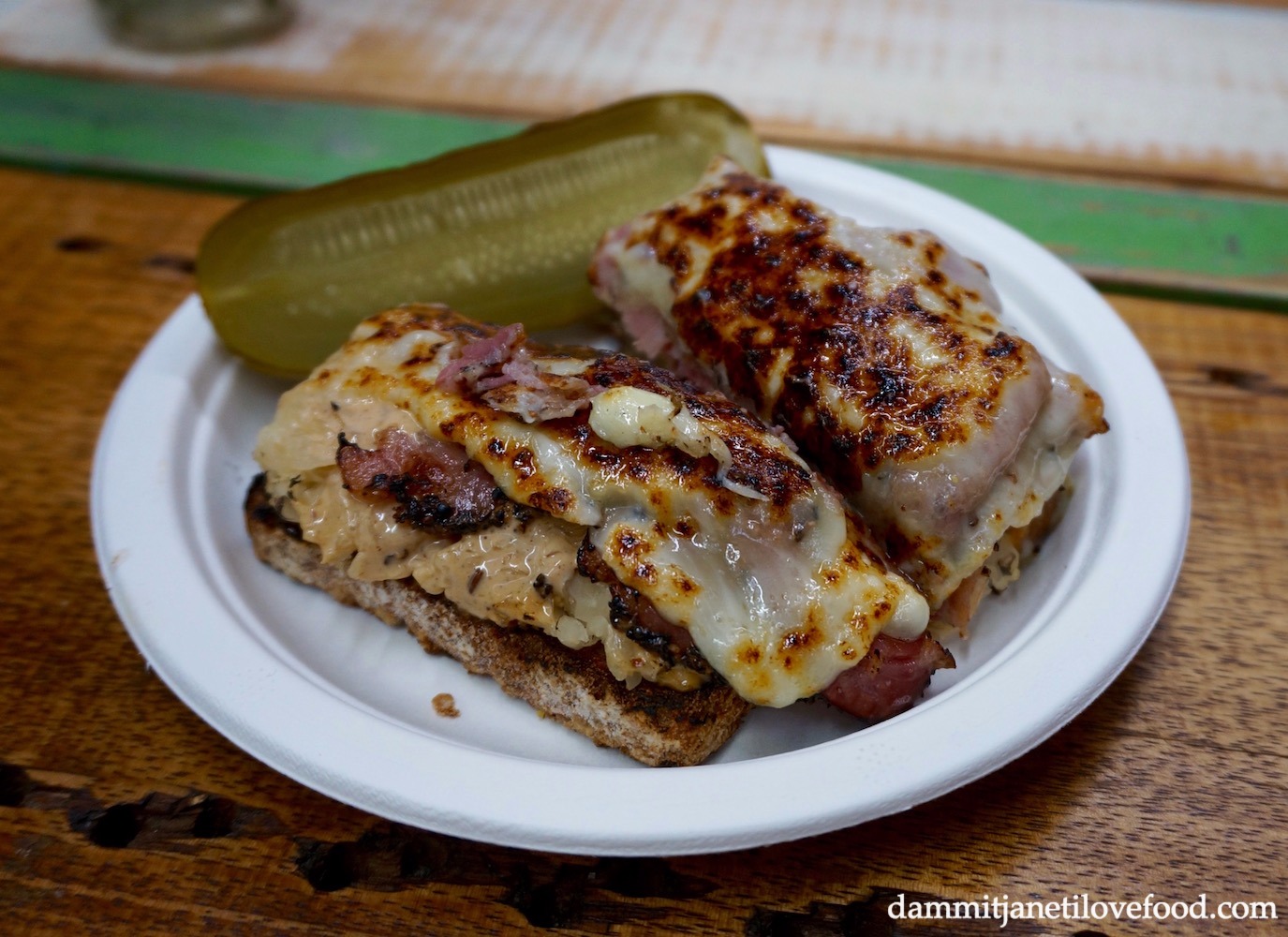 (artisan rye bread, mustard, home made sauerkraut, Cape Grim brisket pastrami, cheese)