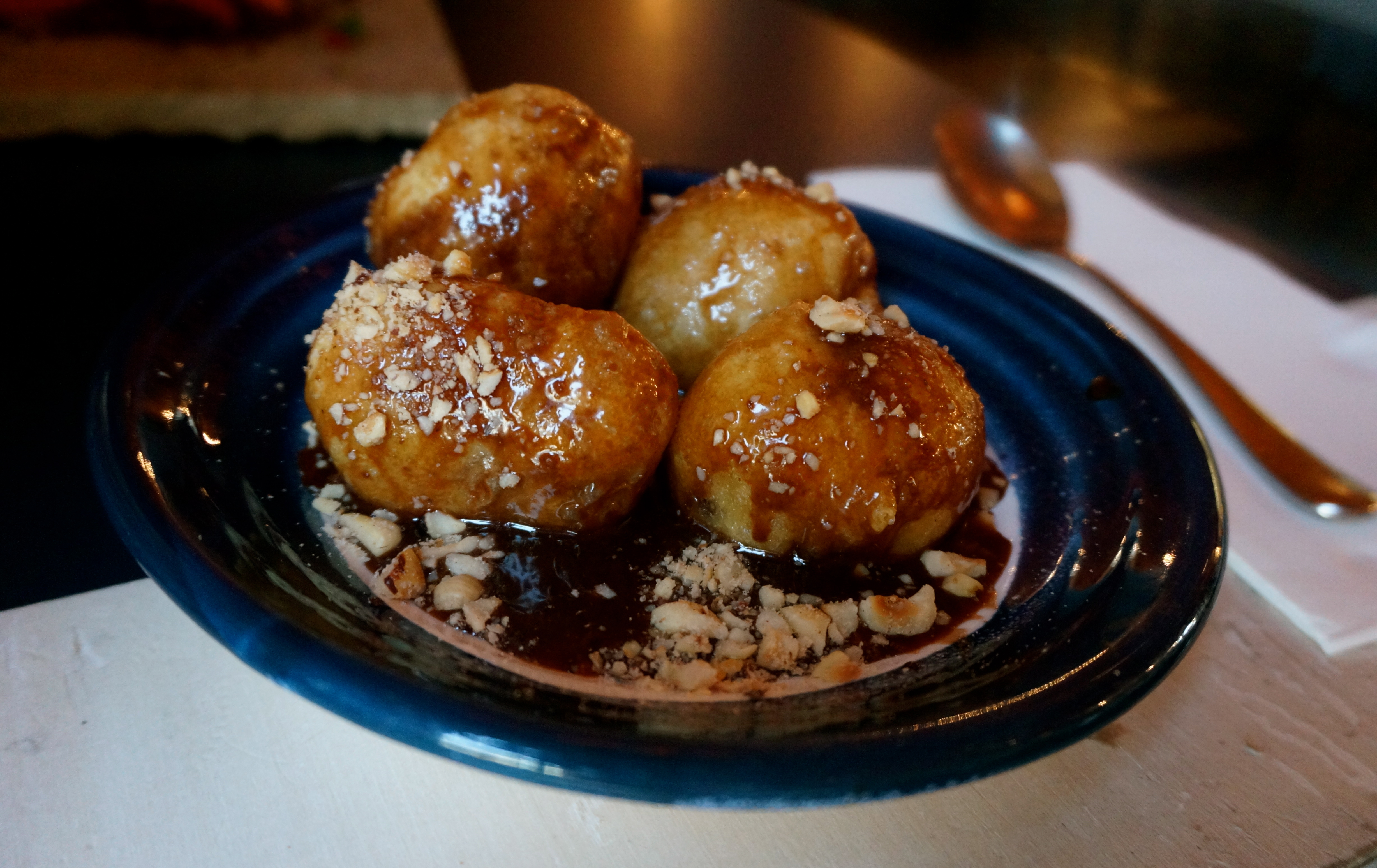 If you decide to have their 10 dish sharing banquet (like we did), be sure to come in HUNGRY and ready to eat. Everything we tried was enjoyable, but it would be the delicious dips and the extraordinary souvlakakias (small souvlakis) that I would be returning for. The staff were friendly and efficient, the atmosphere loud and buzzing, and the decor fascinating with a sculptural canopy of bright orange terracotta pots hanging from the ceiling.
