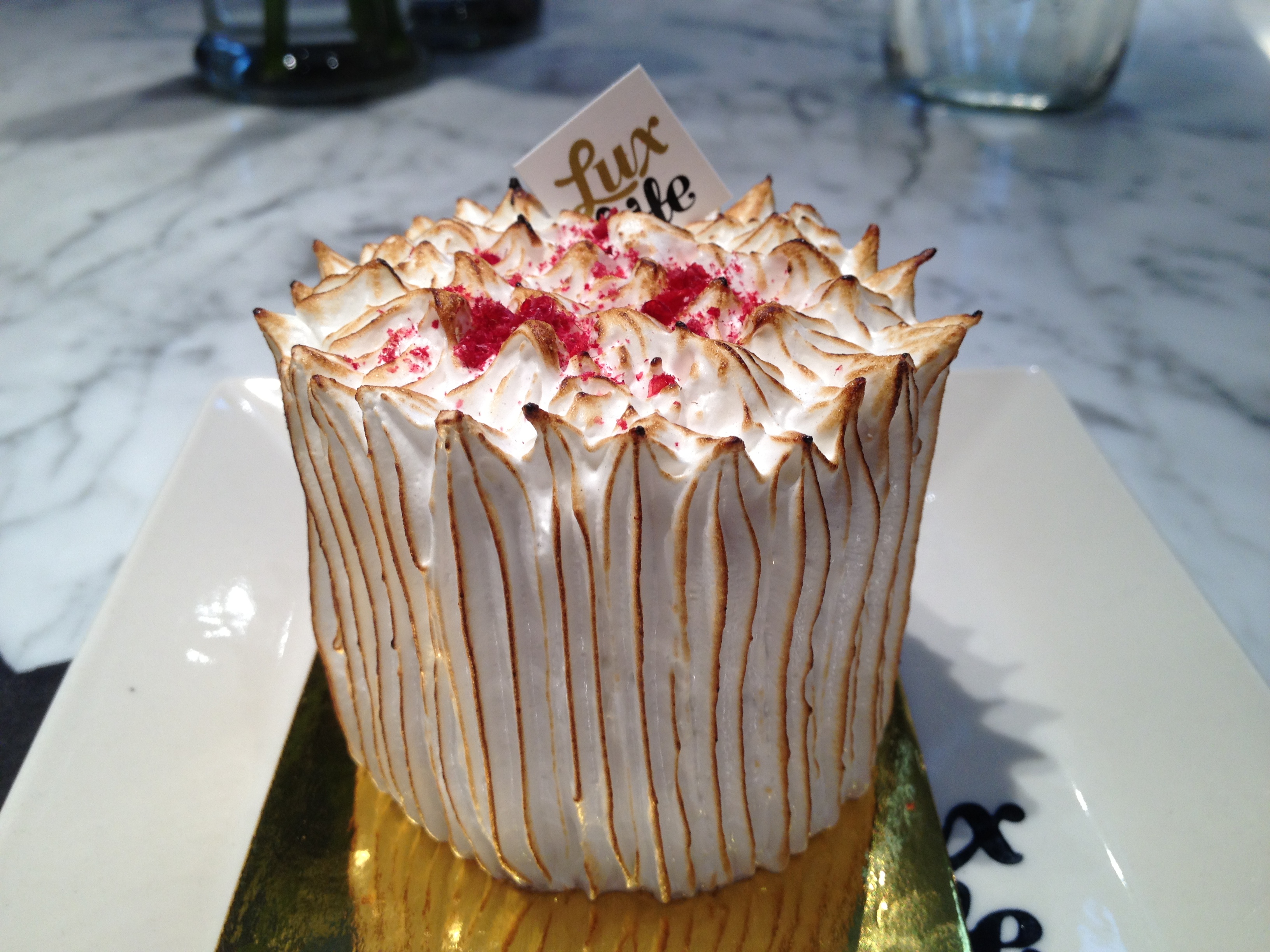 Lolly Bag Cake – made famous by Masterchef, this cake is made up of seven layers that include: 2 layers of joconde almond sponge brushed with banana sweet syrup (banana lollies), freckles crunch with popping candy (chocolate freckles), spearmint leaf buttercream (spearmint leaves), mandarin Jaffa ganache (jaffas), musk stick marshmallow (musk sticks), topped with a delightful redskin glaze (redskins). A very sweet and unique creation, the best part about eating this was trying to determine which layer was which lolly = Good
